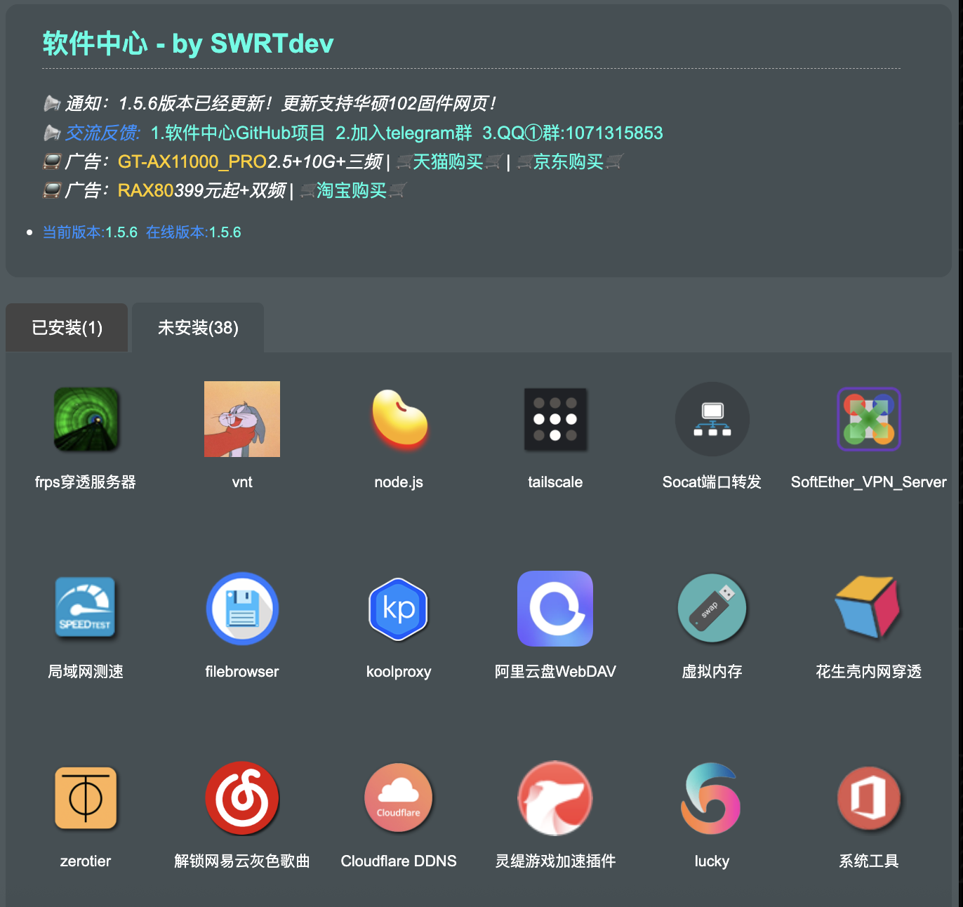 软件中心功能虽然少点,但主流的插件应用都有,等华硕官方的NAT功能估计是没戏了,但为啥 Koolshare