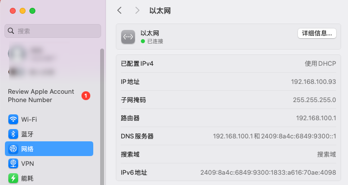 ▲ 查看电脑网卡,已经获取到正确的IP地址,可以上网了。