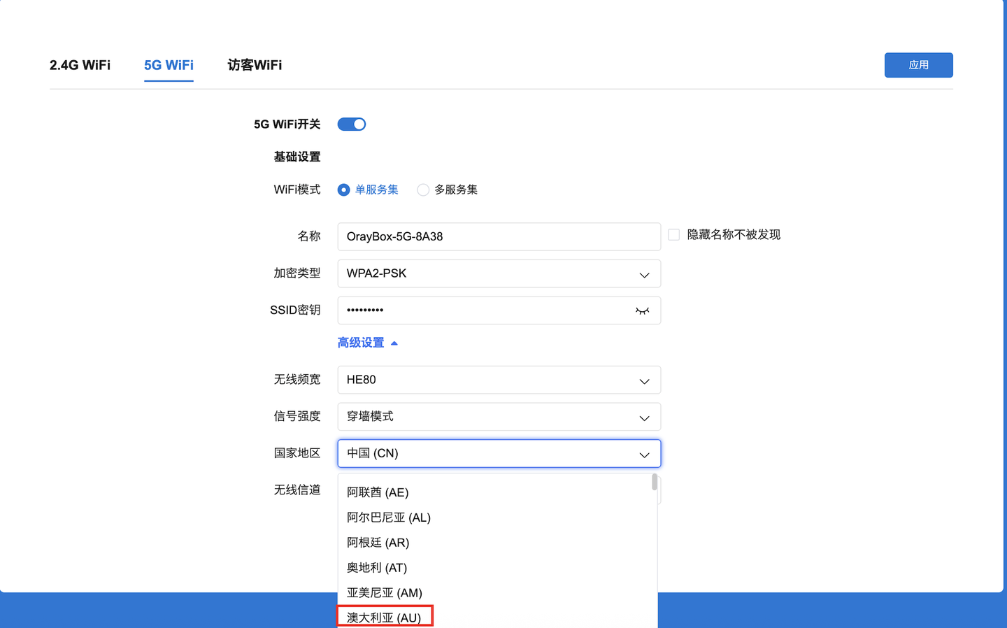 ▲ WiFi设置里可以更改国家地区,有澳大利亚区域,不知道能否增强信号,不过这么小的路由应该没人作主路由吧,懒得测试了。