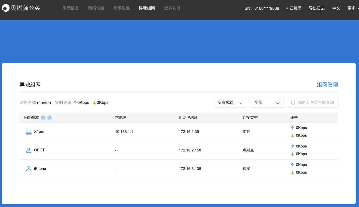 既然是主打异地组网的路由,体验一下蒲公英的异地组网功能。