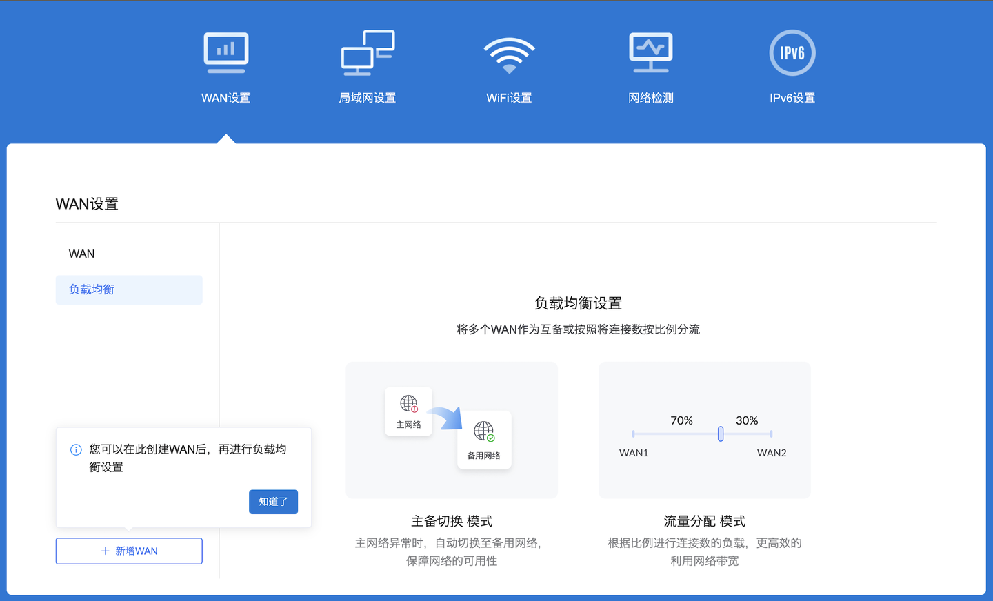 ▲ WAN设置里竟然支持多WAN设置以及负载均衡,可是这个路由器只有2个网口呀!