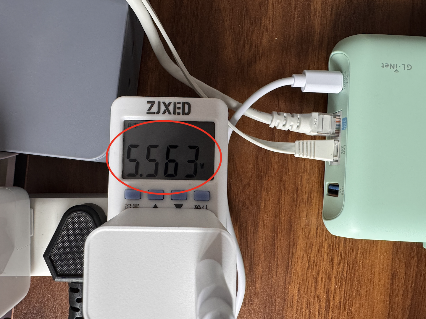 ▲ 插入两根网线的情况下,待机5.5W功耗