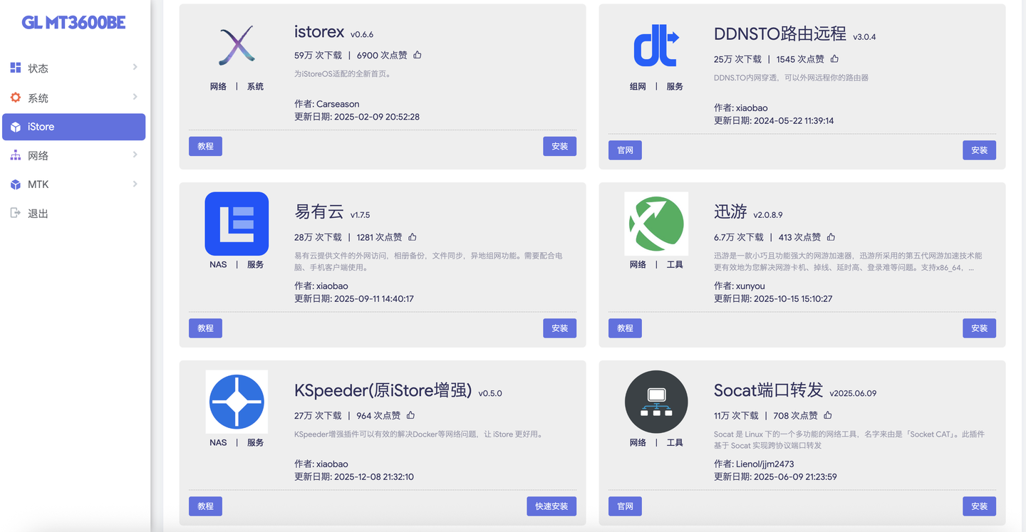 ▲ 有了iStore商店,不管你是新手还是老鸟安装各种插件就方便多了,使用iStore商店前记得需要更新一下软件包。