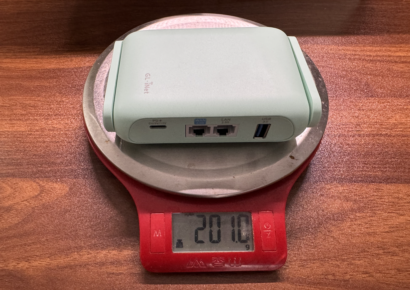 ▲ 这么小的路由拿在手上还挺有分量,上称后路由器有201克,看来用料是很扎实的。