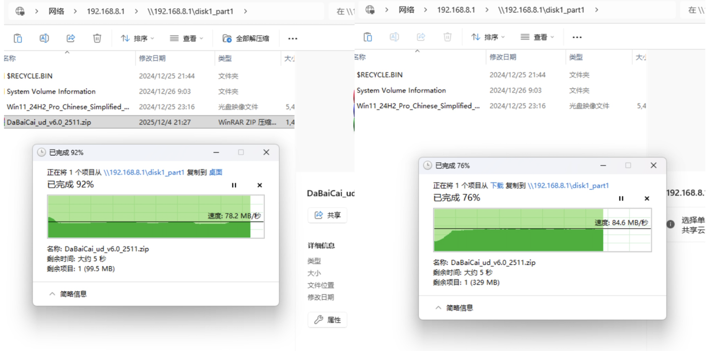 ▲ 读取和写入速度在80MB/秒,这个速度不算快,可能是固件原因还没优化好,这个CPU应该可以到150MB/秒。
