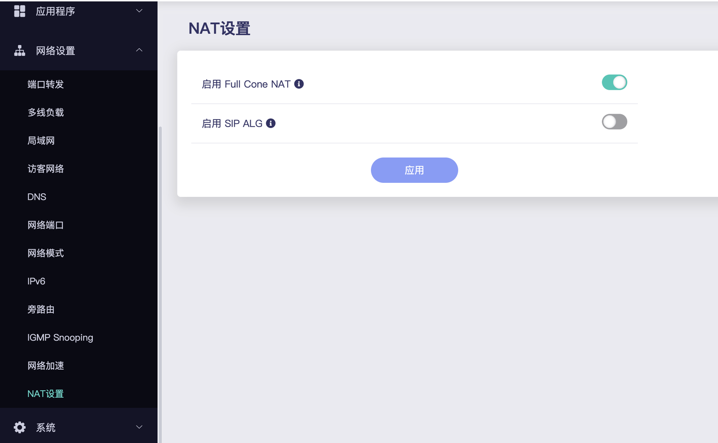 ▲ 网络设置里支持启用Full Cone模式,开启后可以降低游戏延迟,以及增加异地组网成功率。